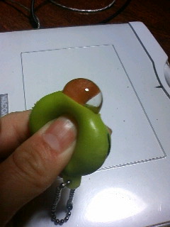 柔らかい空豆を押すと、中から顔文字が描いてある豆が飛び出すキーホルダーがあったのだが